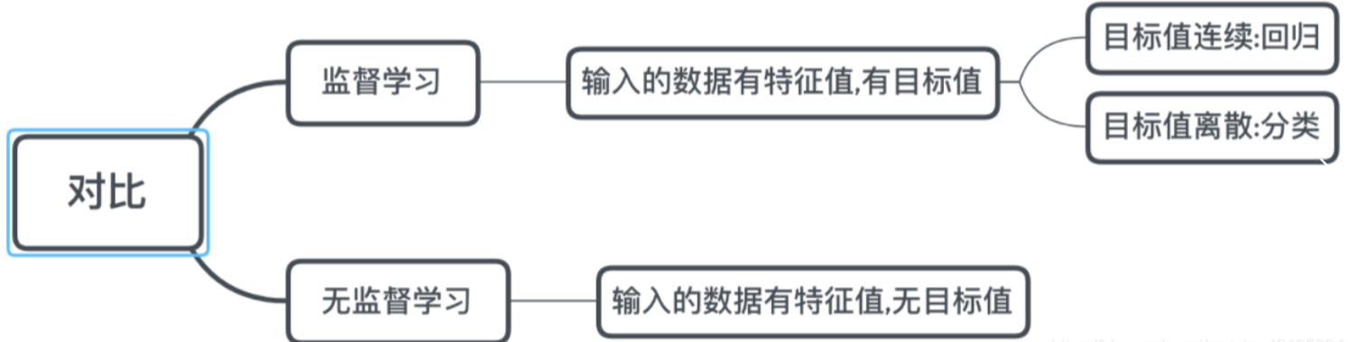 - 定义: 算法从未标记的数据中学习,没有明确的输出标签。其目标通常是发现数据的结构或模式。