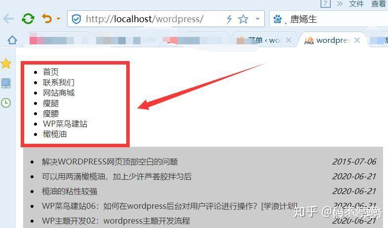 这样,我们就可以在wordpress网站的前台头部看到我们添加的导航菜单,如下图: