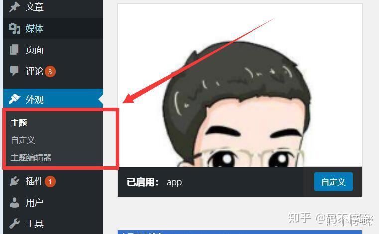 wordpress主题模板中来添加这个功能。这个,我们可以进入到wordpress后台的外观去看看,如下图: