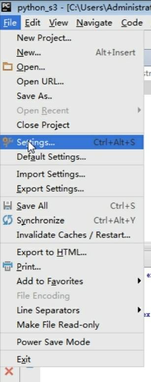 6.对python字体大小进行设置:点击file中的setting