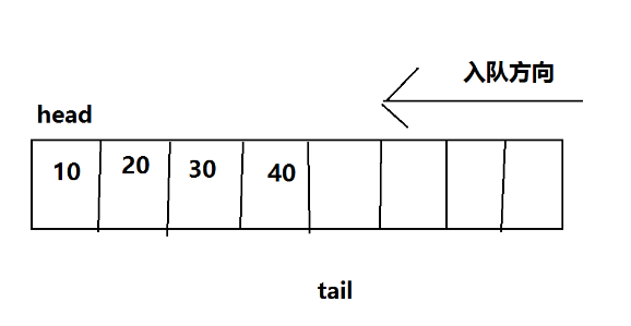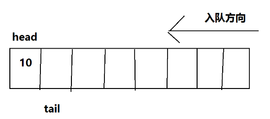 当进行第一次入队操作后,头指向第一个位置。而尾指向最后一个元素的下一个位置。