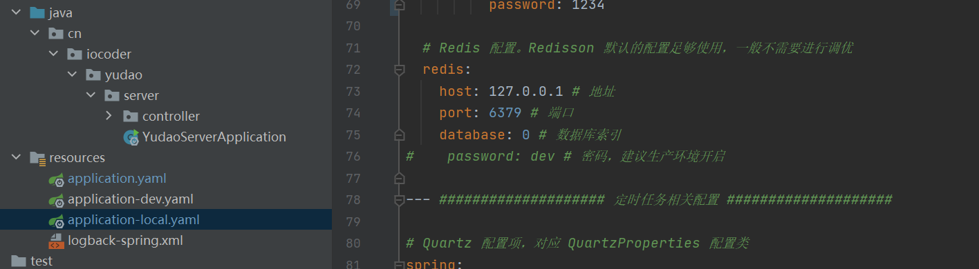 我们这里激活的是local,所以相关的配置再local.yaml文件里面,我们只需要配置好local里面的配置就可以了