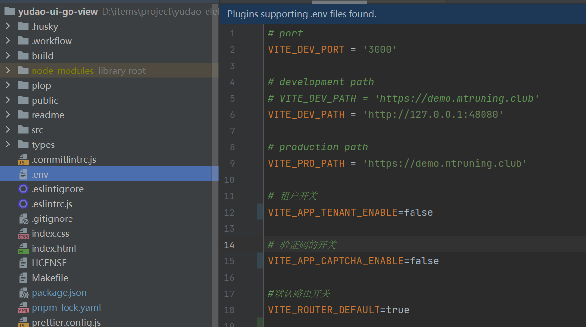 因为后端我们已经关闭了租户和验证码,前后端的配置项必须一致,否则会报错,这里都设置为false。
