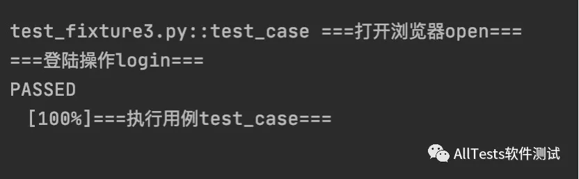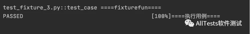 #!/usr/bin/env python # -*- coding: utf-8 -*- """ 微信公众号:AllTests软件测试 """ import pytest @pytest.fixture(name="AllTests") def fixturefun(): print("====fixturefun====") @pytest.mark.usefixtures("AllTests") def test_case(): print("====执行用例====")