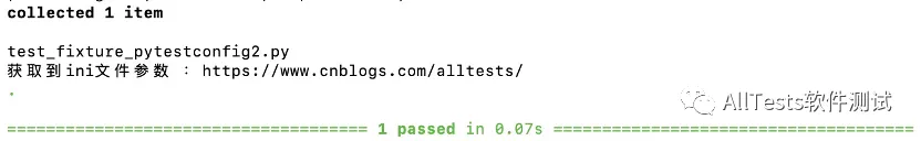 #!/usr/bin/env python # -*- coding: utf-8 -*- """ 微信公众号:AllTests软件测试 """ def test_getini(pytestconfig): base_url = pytestconfig.getini("base_url") print("\n获取到ini文件参数 :%s" % base_url)