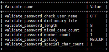 原因是MySQL的安全认证插件认为你的密码强度过低不适合做此操作你可以使用show variables like 'validate_password%'查看当前密码限制条件该命令执行结果如下