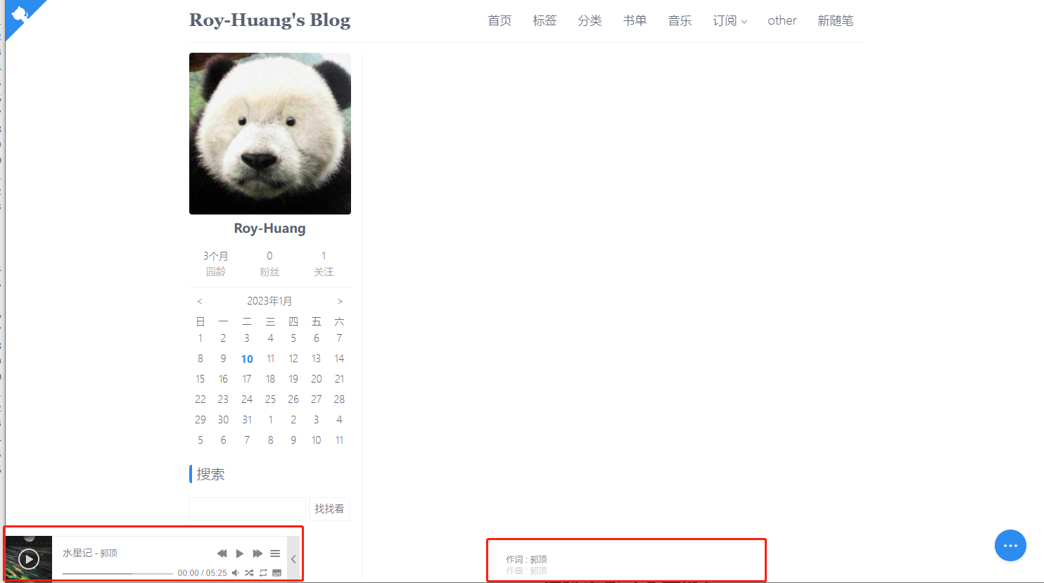 在博客底部添加音乐播放器,可以添加网易云歌单到播放器列表,设置随机播放和