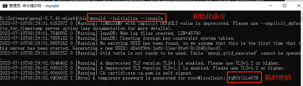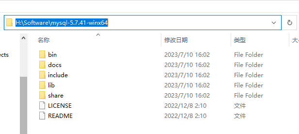 通过管理员权限使用CMD进入解压文件夹的 你的路径\mysql-5.7.41-winx64\bin 下