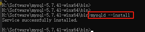 显示 Service successfully installed. 表示MySQL的服务已经添加到系统服务中了,每次电脑开机时会默认启动。