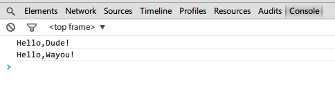 console.log('Hello,' + (name ? name : 'Dude') + '!');