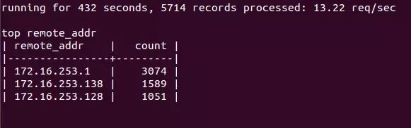 $ ngxtop top remote_addr