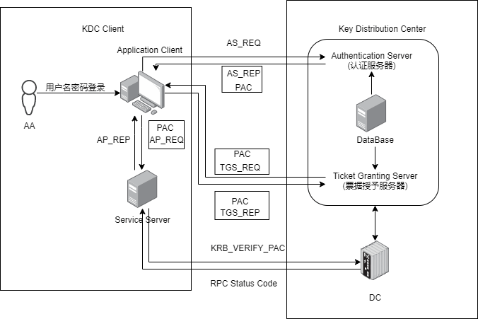 - PAC 在用户的认证阶段引入会导致认证耗时过长。(Windows Kerberos 客户端会通过 RPC 调用 KDC 上的函数来验证 PAC 信息,这时候用户会观察到在服务器端与 KDC 之间的 RPC 包流量的增加。)