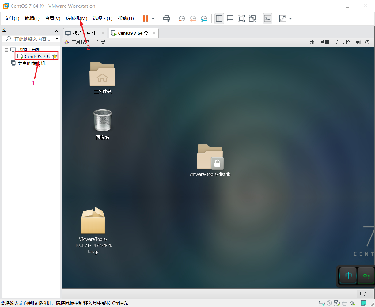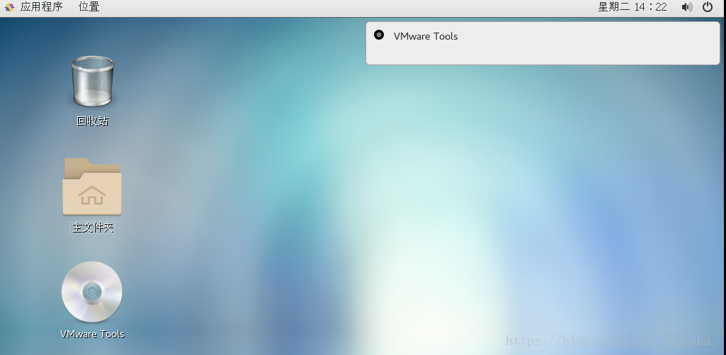 在VMware的界面上面选择重新安装VMware-tools,虚拟机界面右上方会弹出提示,光盘名为VMware tools