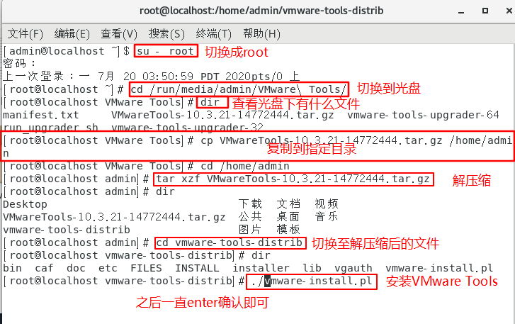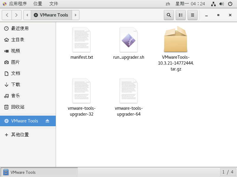 你可以选择使用命令进入光盘,或者右键/双击打开光盘,使用cp将VMware Tools -version.tar.gz 复制到指定目录,使用tar命令进行解压缩。