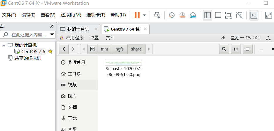 设置完成后即可在/mnt/hgfs 看到共享目录