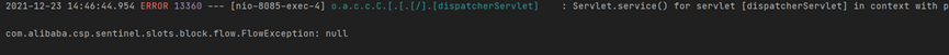需要注意的是,被限流的时候FeignClient并不会调用service-provider的接口,而是在sentinel-demo工程里直接报错: