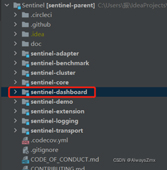 将源码导入IDEA,目录结构如下,sentinel-dashboard模块就是我们要改造的控制台源码: