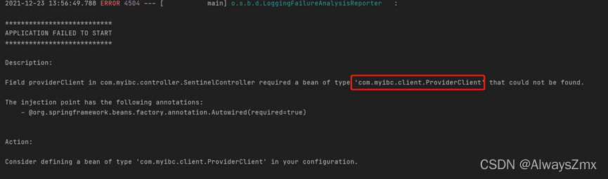 启动服务可能会报如下错误,这是由于依赖的sentinel的版本与openfeign版本不一致导致的,sentinel默认依赖的版本是2.2.7.RELEASE,而openfeign如果不指定版本,默认依赖的版本是2.2.9.RELEASE
