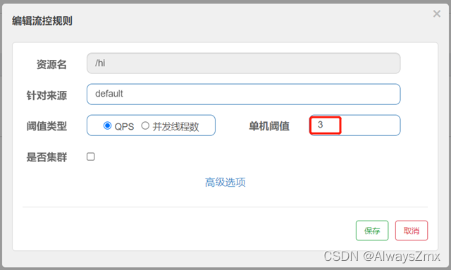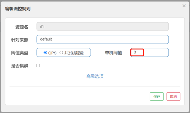在sentinel控制台将阈值修改为3后保存: