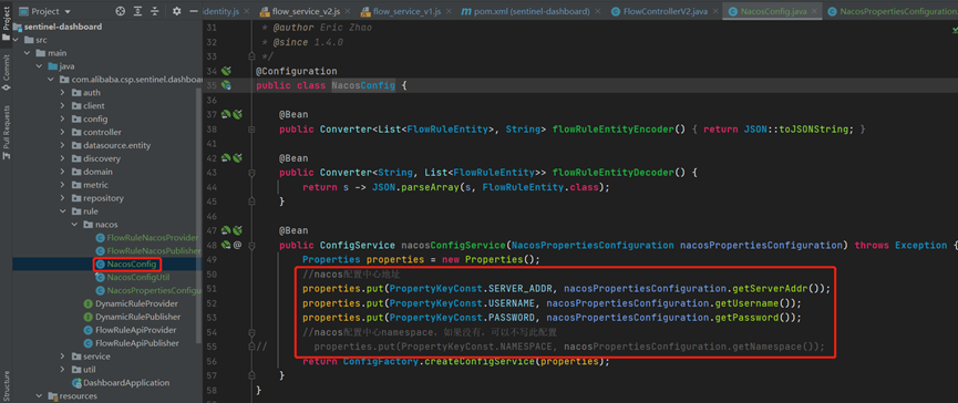 在sentinel-dashboard/src/main/java/com/alibaba/csp/sentinel/dashboard/rule/nacos目录下新增一个nacos的配置类: