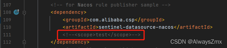 修改sentinel-dashboard控制台模块的pom.xml,将test注释掉: