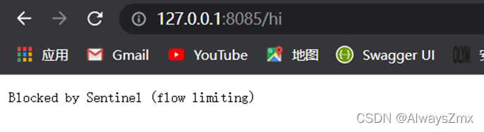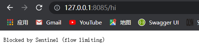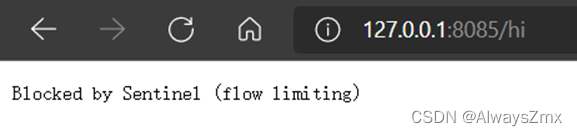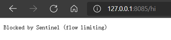 由于刚刚配置的限流规则QPS为2,也就是限制/hi接口每秒最多能处理2个请求,这时再在浏览器快速按F5刷新请求接口