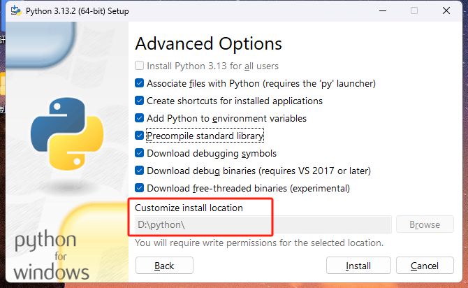 三、指定好路径,上面全选,install