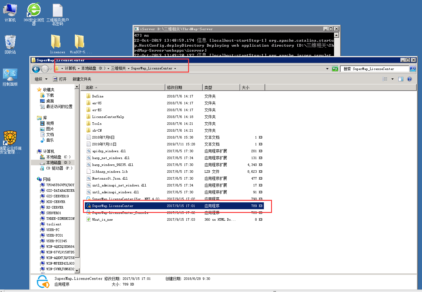 三.如果三维还出不来,或者http://localhost:8090/iserver/services显示许可过期问题时,点击文件D:\三维相关\SuperMap_LicenseCenter\,点击SuperMap.LicenseCenter进入许可中心,查看许可状态,是否时间已经过期