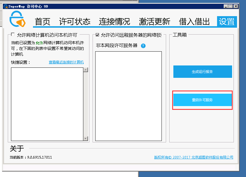 五、将许可文件下载下来,放到任意位置,在许可中心清除之前许可,重启服务许可,激活更新,选择新的许可文件,再次重启服务许可,就可以得到有效期以内的许可了,最后重启服务,三维服务就可以正常使用了