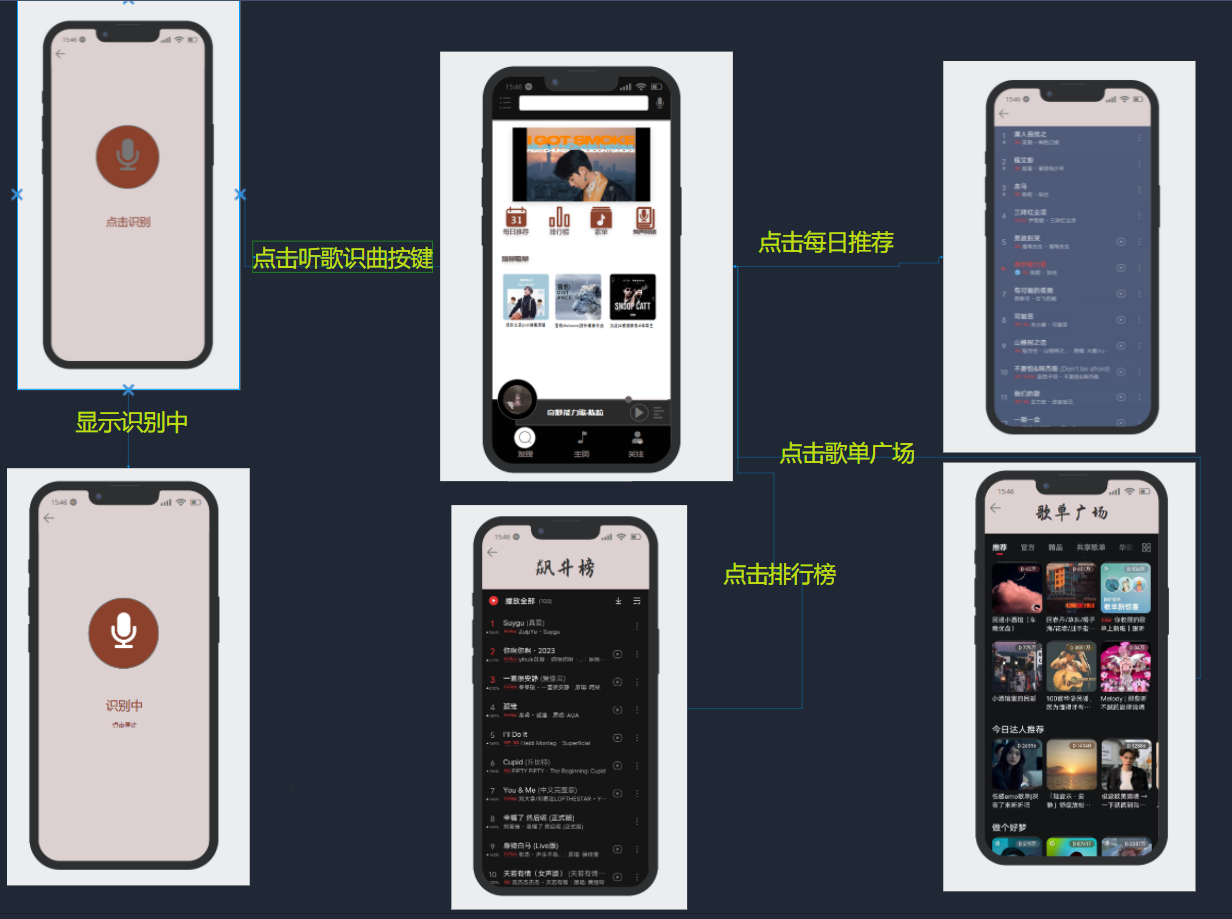 - 点击主页面听歌识曲按键