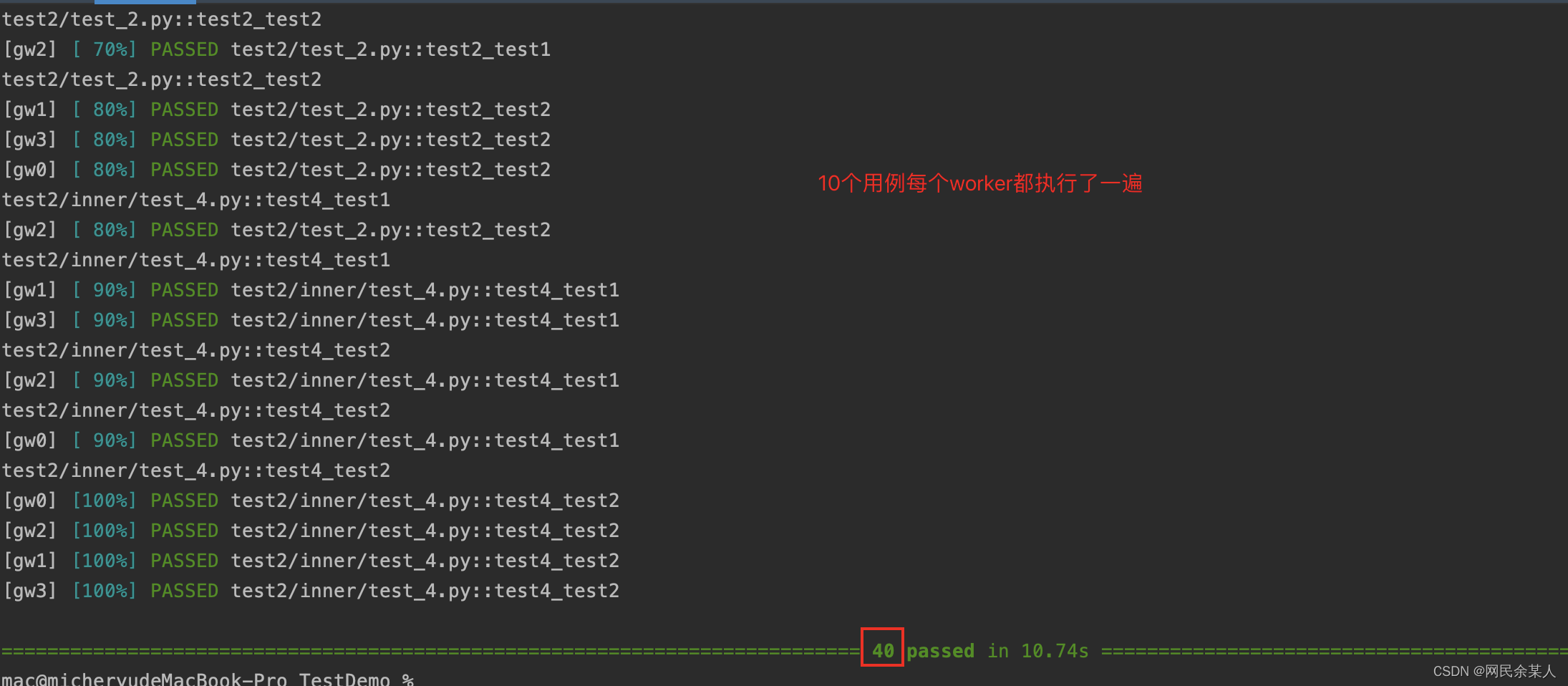 注意:分布式测试(pytest-xdist)方式执行测试时不会输出测试用例中的print内容,因为master并不执行测试用例。
