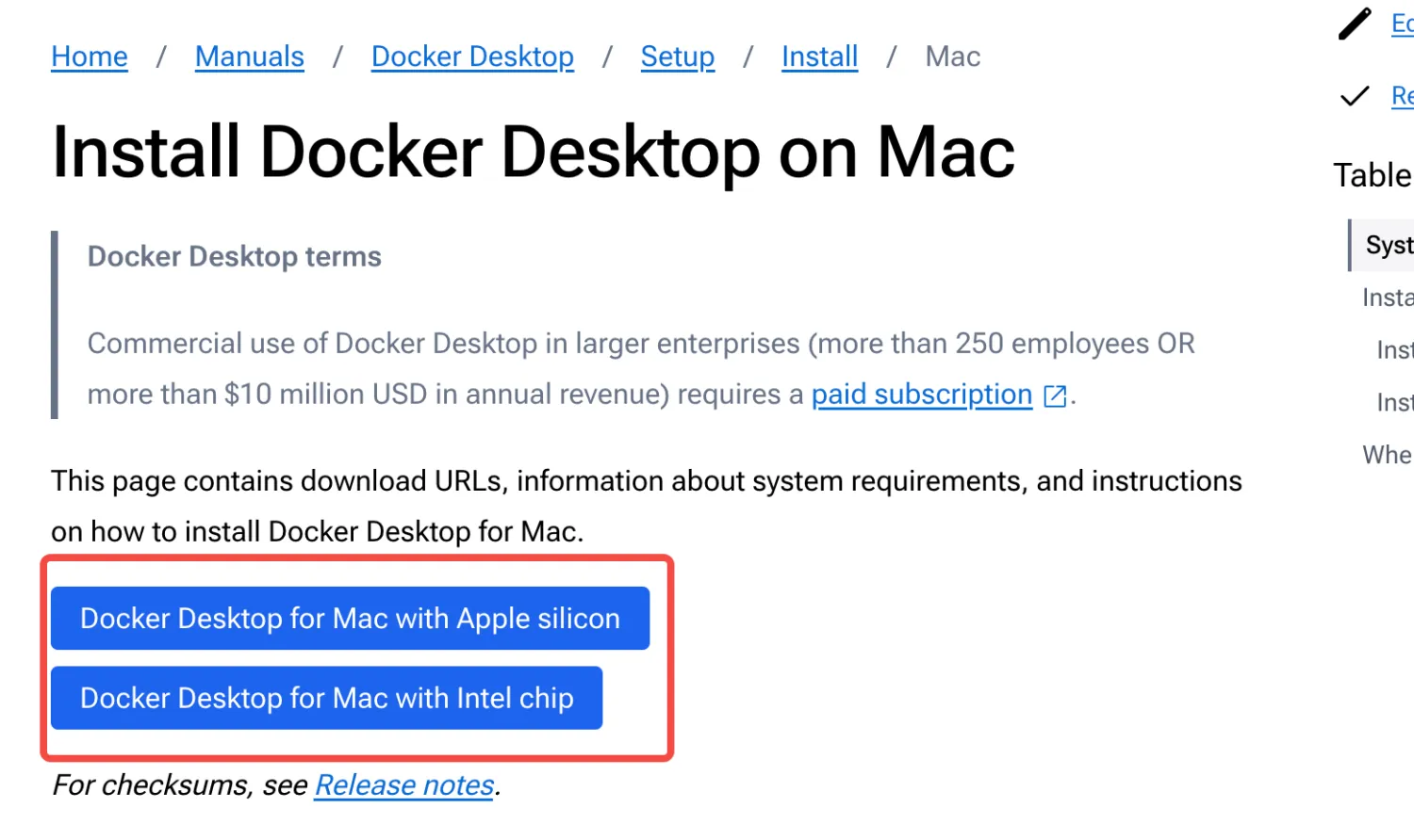 Docker的官网:https://docs.docker.com/desktop/setup/install/mac-install/ 根据自己的电脑配置信息,下载需要的Mac docker 版本。此时要求MACOS 12以上