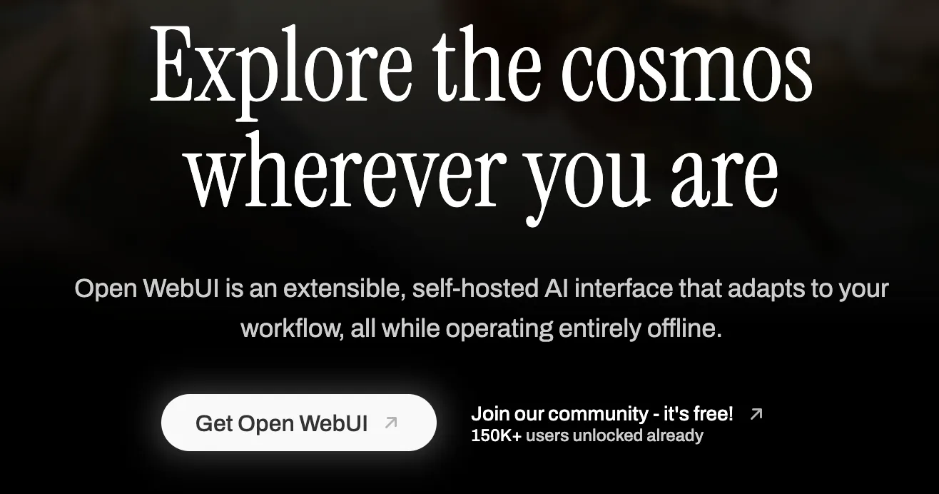 进入Open-WebUI官网(https://openwebui.com)点击【Get OpenWebUI】按钮,跳转到代码页