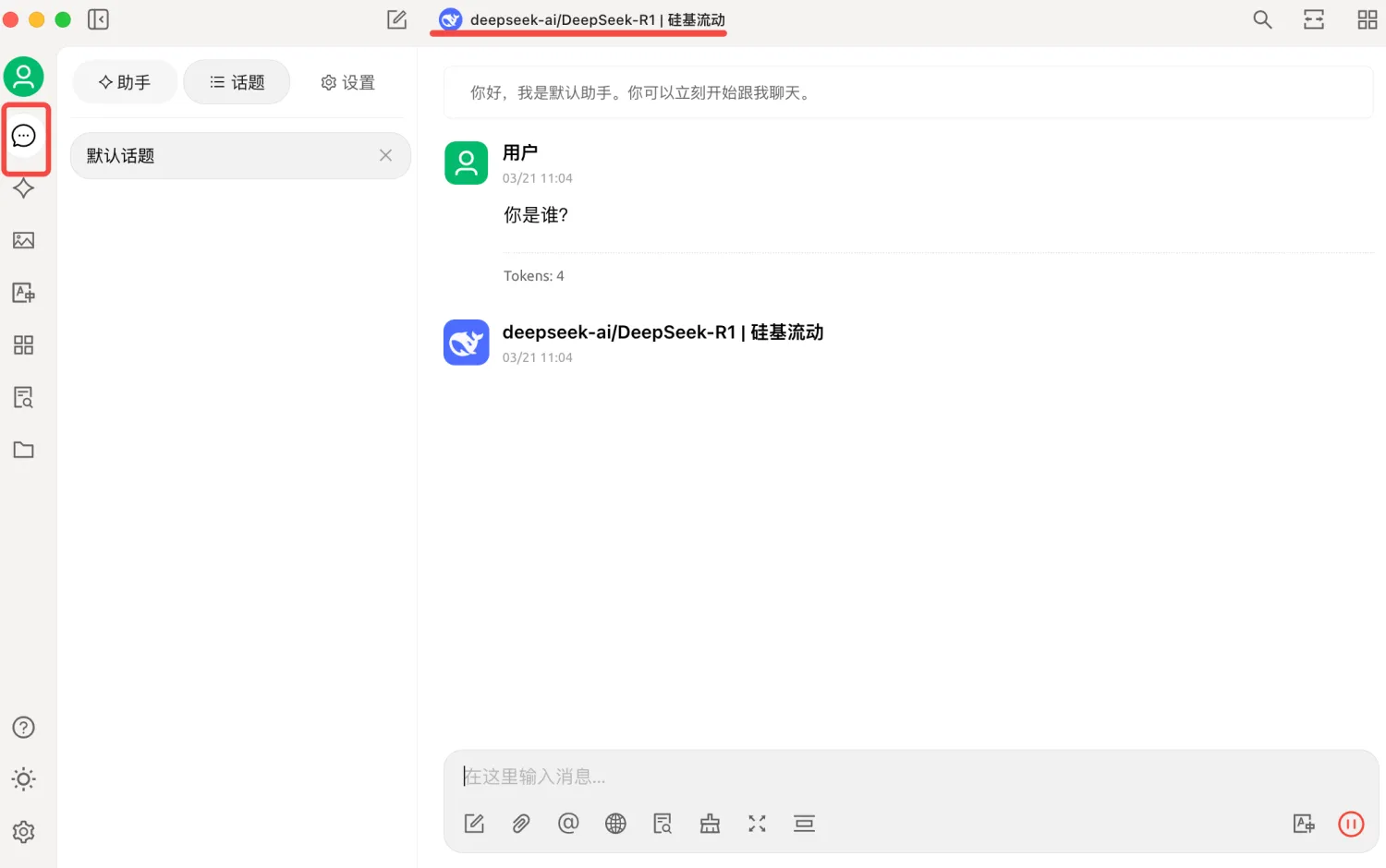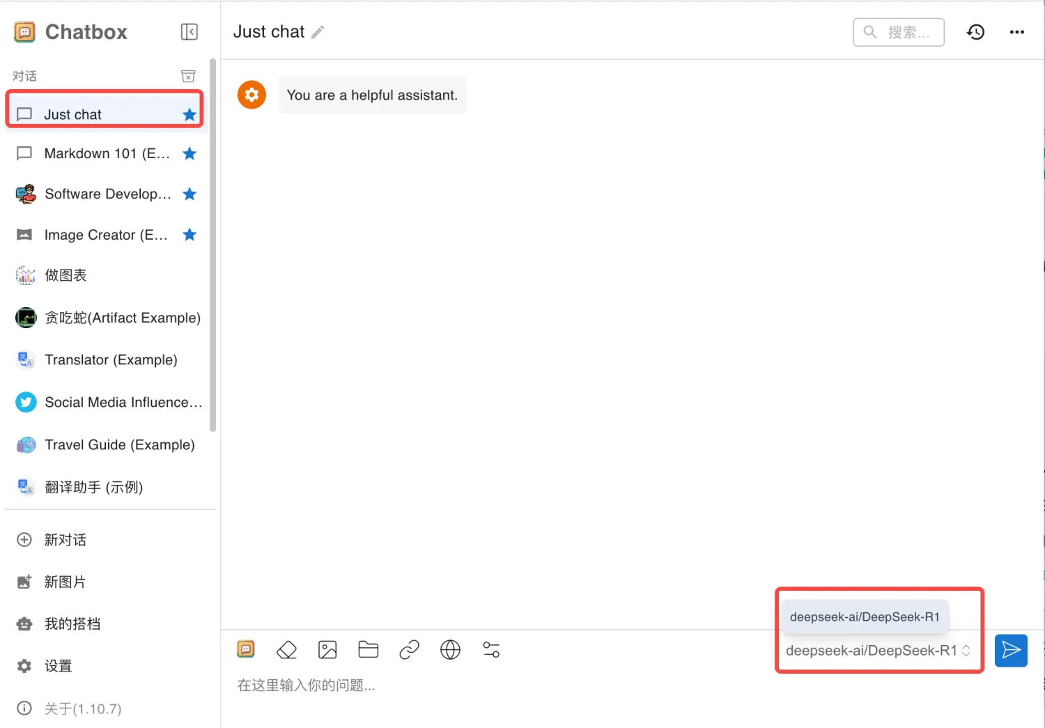 3)此时问答页面显示的就是deepseek-R1,如下: