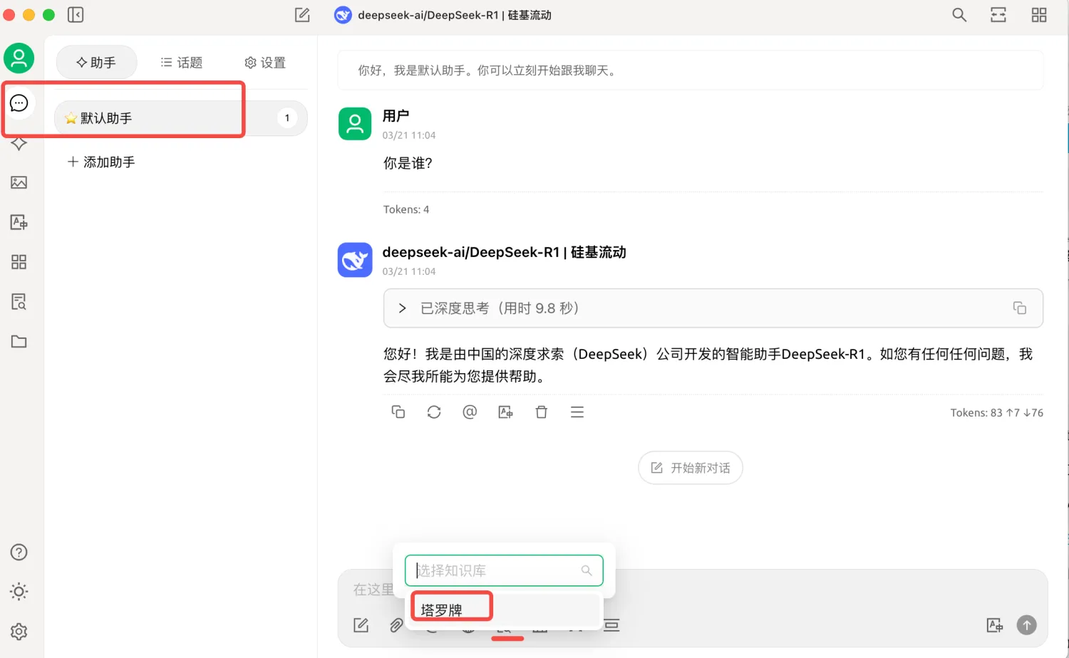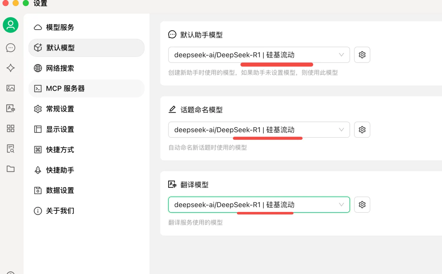 2)添加完成以后,在默认模型中都改成deepseek-R1,如下: