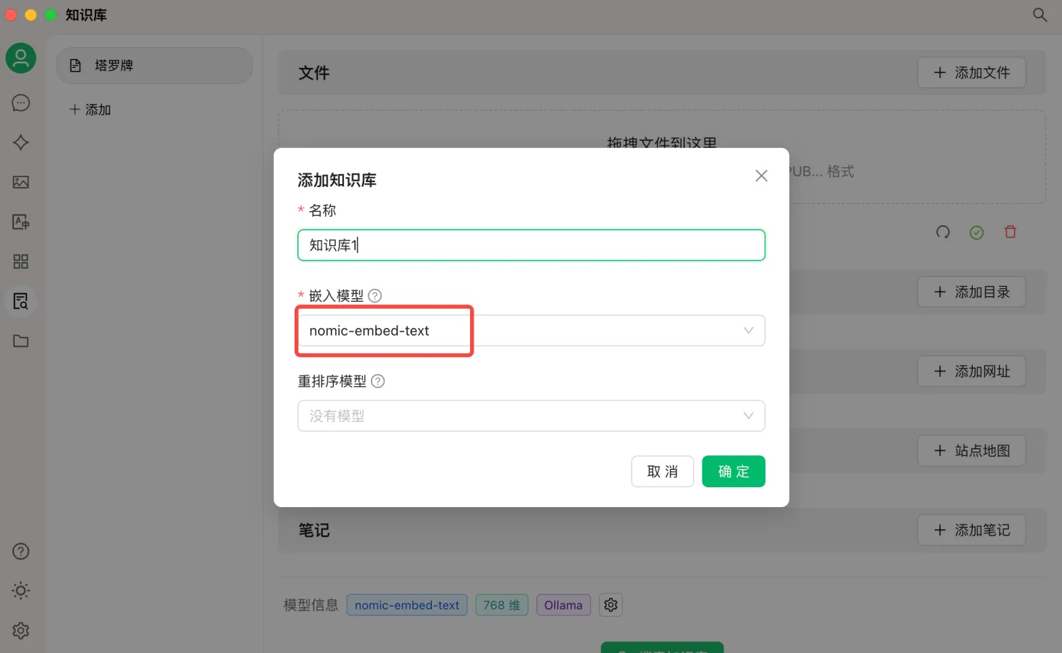 1)cherry studio中配置知识库,先通过Ollama-添加nomic-embed-text