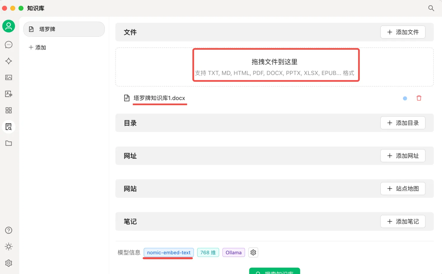 3)在cherry studio的知识库中,上传知识库文档拖到这里