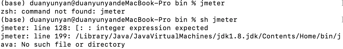 (base) duanyunyan@duanyunyandeMacBook-Pro bin % brew search jmeter --搜索当前是否安装Jmeter