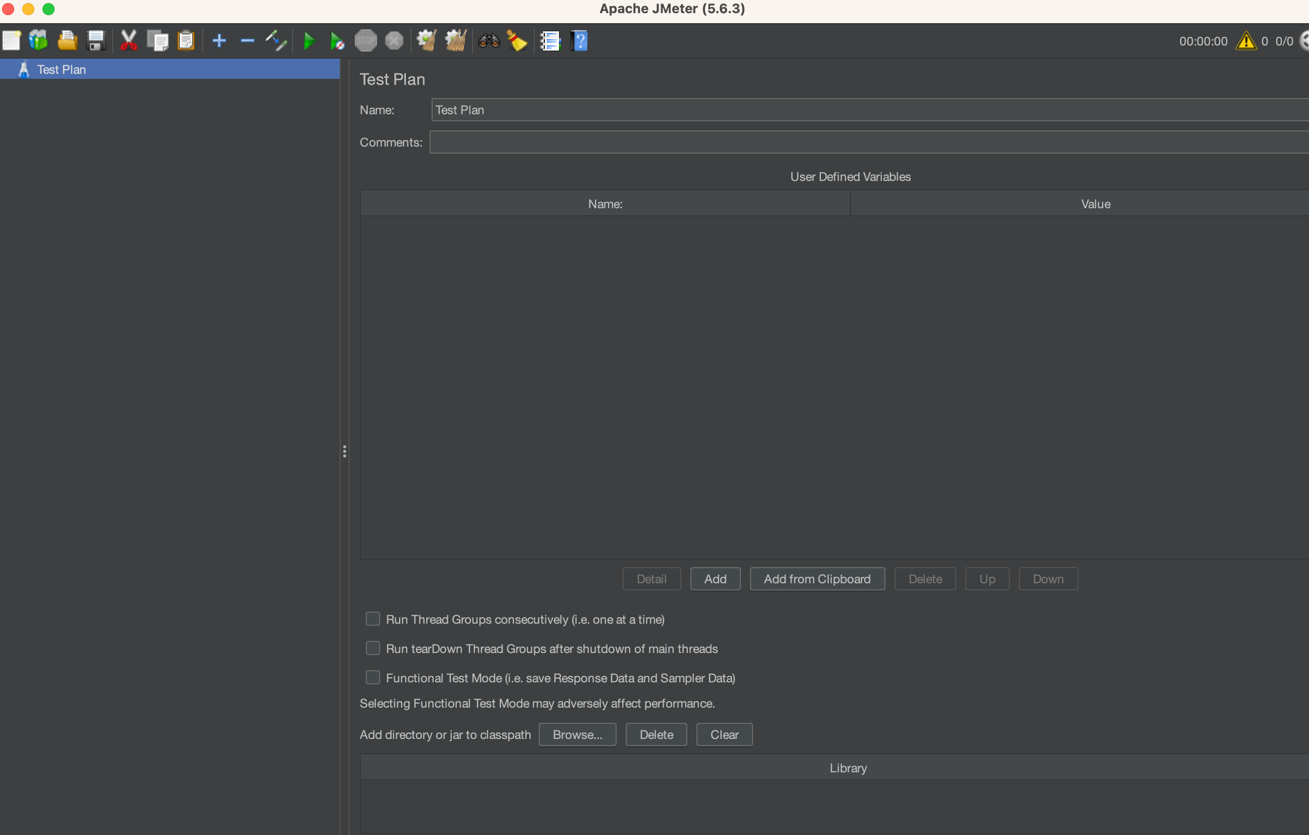 (base) duanyunyan@duanyunyandeMacBook-Pro bin % brew info jmeter --查看jmeter 具体信息 ==>jmeter: stable 5.6.3 (bottled) Load testing and performance measurement application https://jmeter.apache.org/ Not installed From: https://github.com/Homebrew/homebrew-core/blob/HEAD/Formula/j/jmeter.rb License: Apache-2.0 ==>Dependencies Required: openjdk@21 ✘ ==>Analytics install: 1,888 (30 days), 5,935 (90 days), 27,805 (365 days) install-on-request: 1,886 (30 days), 5,931 (90 days), 27,798 (365 days) build-error: 0 (30 days) (base) duanyunyan@duanyunyandeMacBook-Pro bin % brew install jmeter -- 安装jmeter ==>Downloading https://mirrors.aliyun.com/homebrew/homebrew-bottles/api/formula ........ Disable this behaviour by setting HOMEBREW_NO_INSTALL_CLEANUP. Hide these hints with HOMEBREW_NO_ENV_HINTS (see `man brew`). (base) duanyunyan@duanyunyandeMacBook-Pro bin % brew search jmeter --查看已经安装好了 ==>Formulae jmeter ✔ ==>Casks metamer (base) duanyunyan@duanyunyandeMacBook-Pro bin % jmeter --此时Jmeter启动出现窗口页面