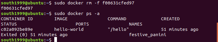 - 如图可以看到,之前我们用ubuntu镜像创建的容器已经被删除。