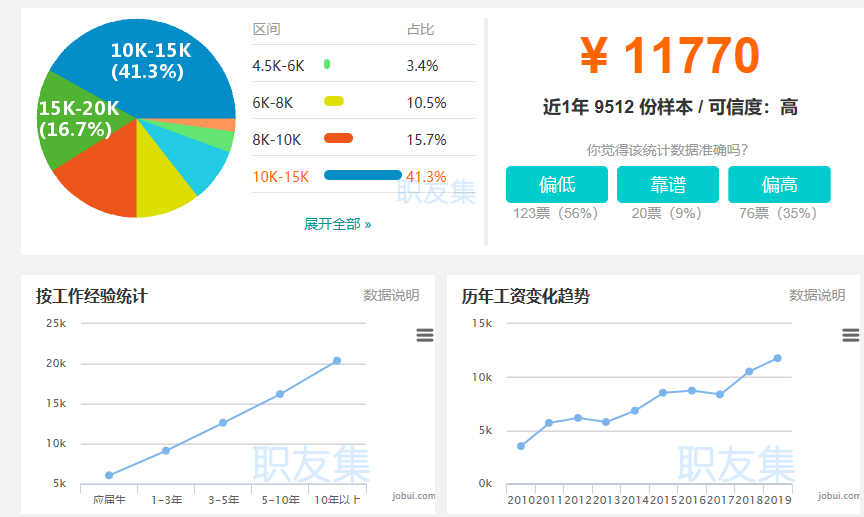 就业方面,以前程无忧为例,前程无忧上每天招聘web前端岗位在10w+,职友集上薪资一个月平均也在1w+。所以说web前端年薪30万真的不是什么新鲜事。随着工作经验增长,薪资也在增长。不过前提是自己需要不断的学习,毕竟技术的迭代更新超乎你的想象,只有不断学习才能满足公司自我提升的需求。