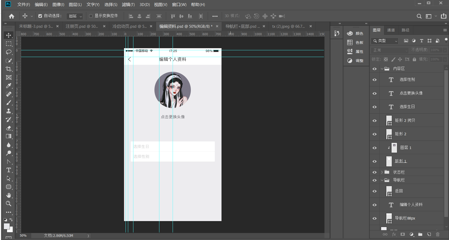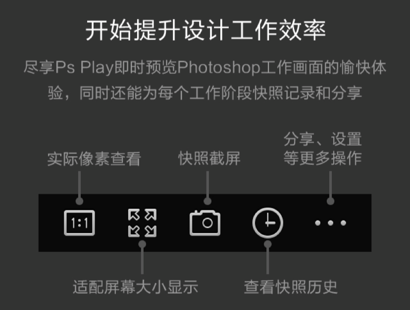 - 实际像素查看:如果你在ps中是以放大模式打开的,那么手机也会同步到放大模式,可是想要看整体效果的话,还是需要点击1:1