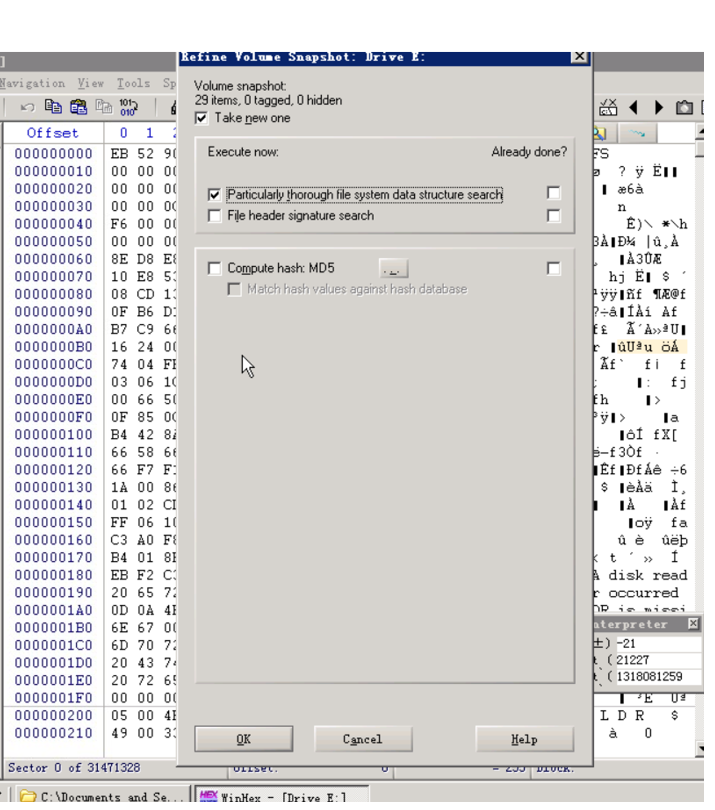 1)试着把E盘格式化后,分别用winhex和final data恢复被删除的文件,看能否恢复成功。