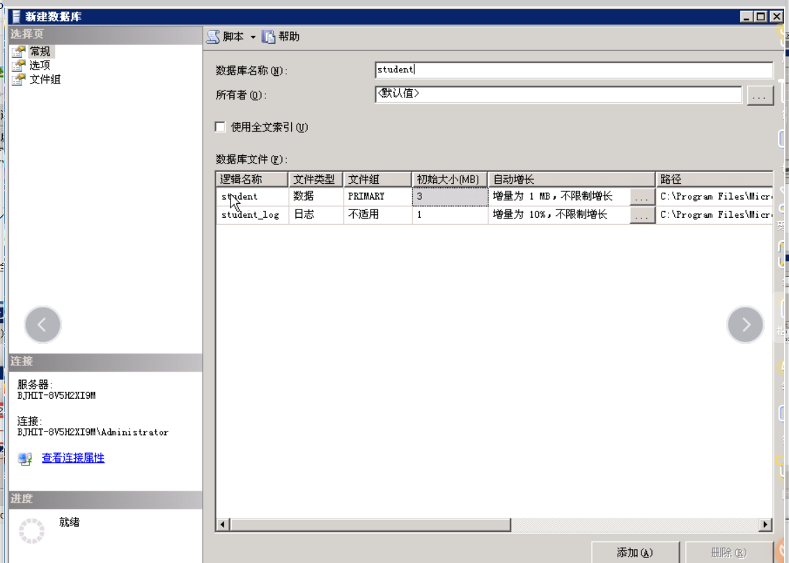 在数据库名称内输入student新建一个student数据库,然后点击确定 。
