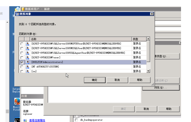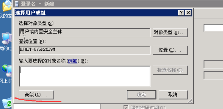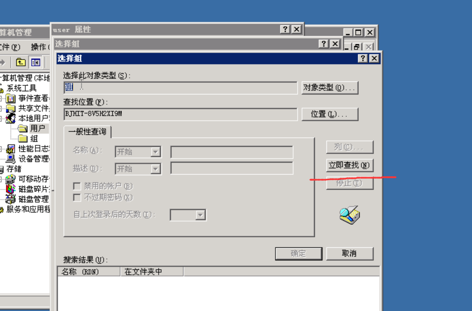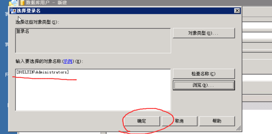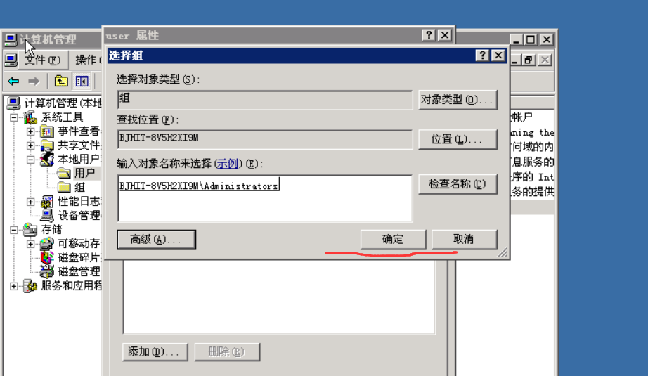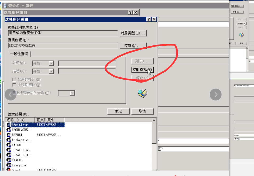 弹出查找对象对话框,在里面选择一个用户,选择administrators。