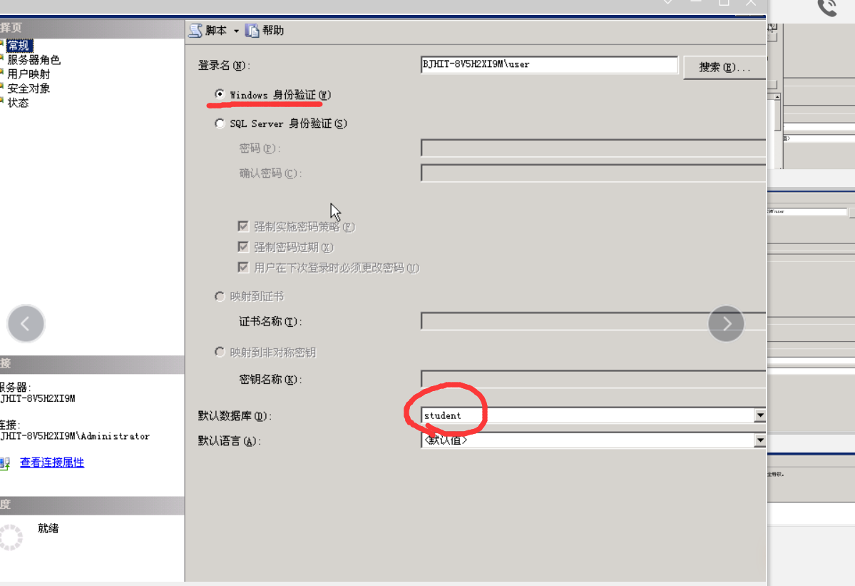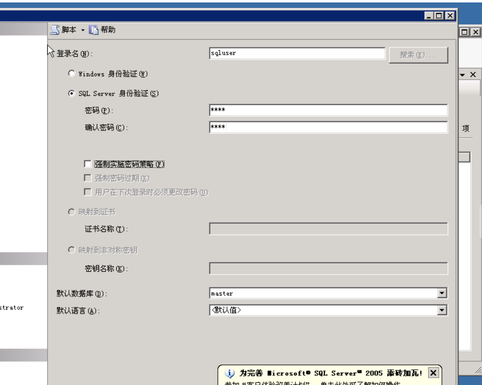 (2)使用SQL Server Management Studio管理SQL Server身份验证的登录帐号。