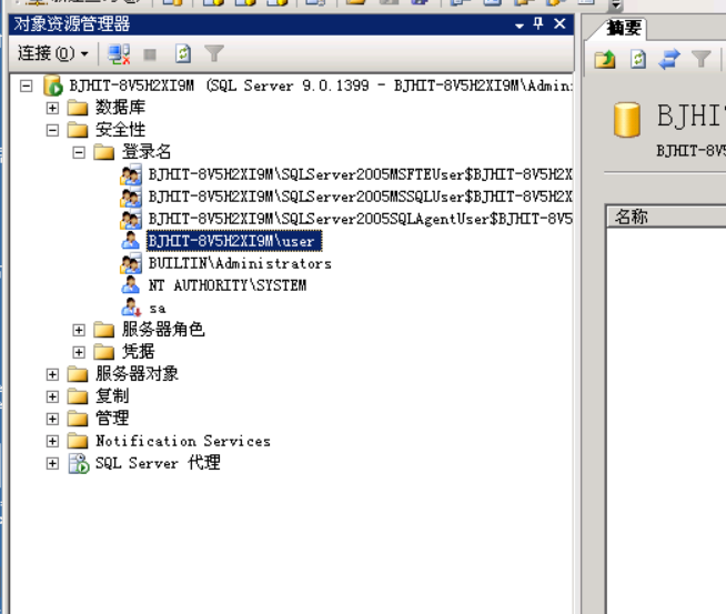 在对象资源管理器中,展开安全性-登录名,可以看到winuser已存在。