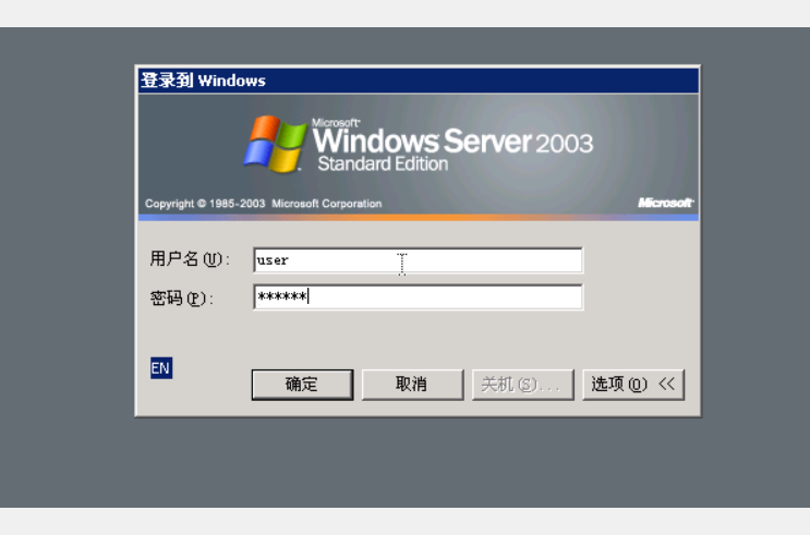 然后会自动到登陆页面,输入之前新建的winuser和密码,点击确定登录。