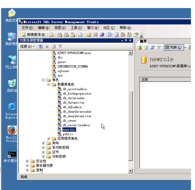 可以在安全性-角色-数据库角色中看到,刚才添加的角色已经成功。