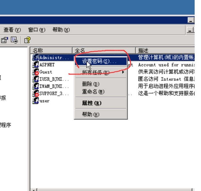 由于远程桌面注销会又会自动连接,所以我们需要先修改当前用户(administrator)的登录密码。